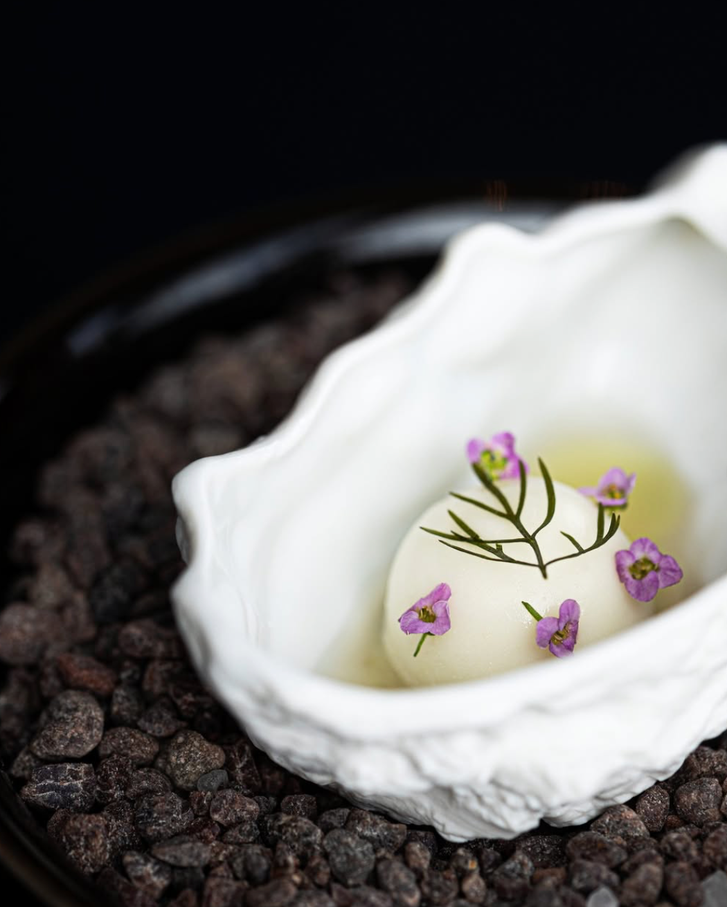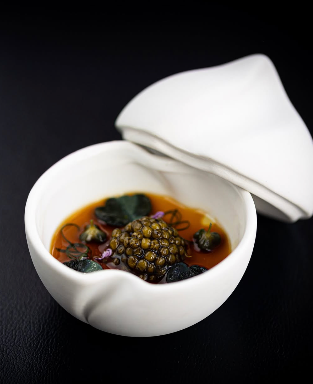The meal unfolds as a series of “expressions”, each one revealing a different lens through which the chefs view seasonality, luxury, and restraint. Some dishes are prepared entirely à la minute at the counter, while others are finished tableside, allowing guests to engage directly with the chefs as ideas, techniques, and inspirations are shared informally.