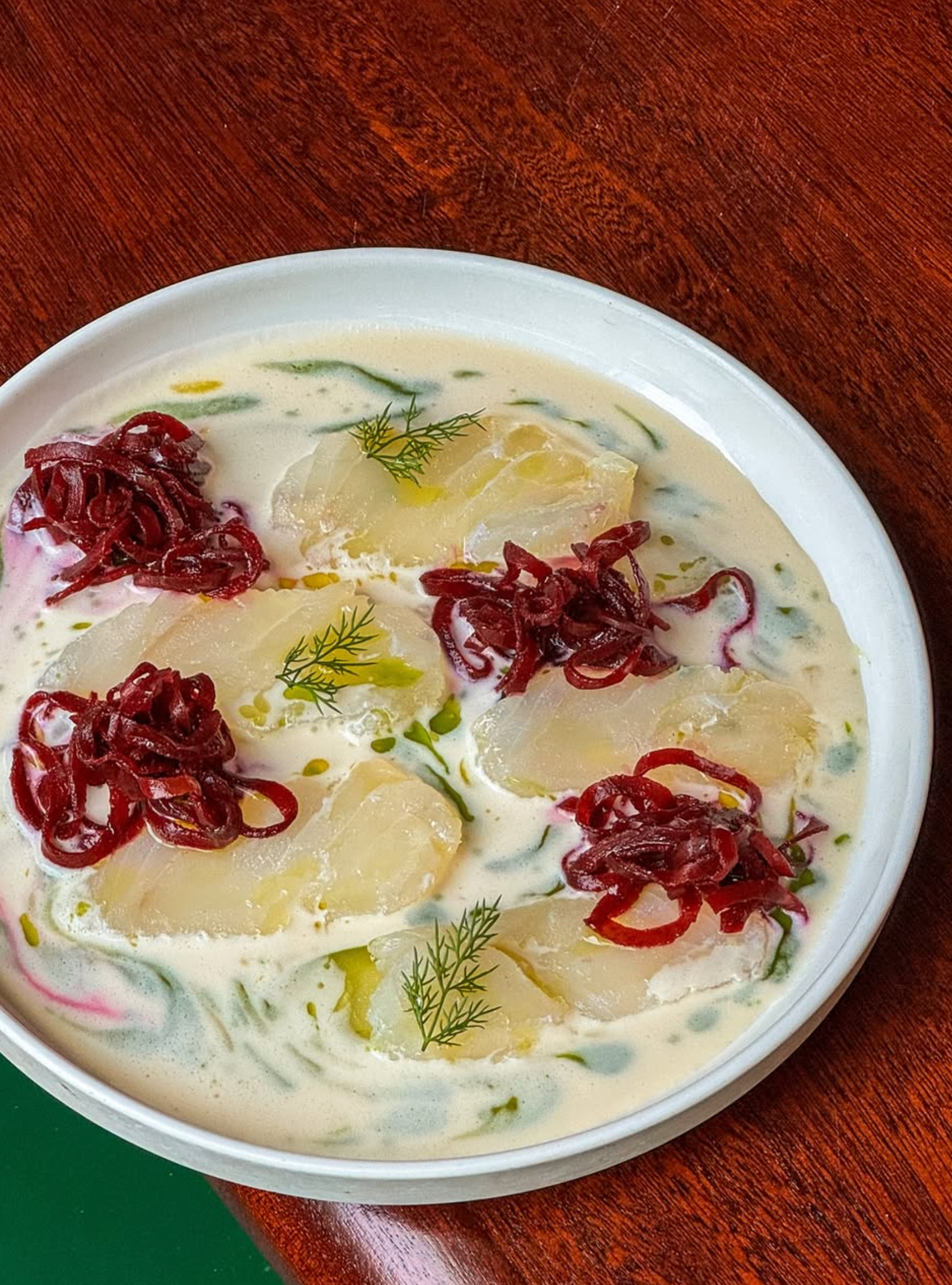 Woven seamlessly through the meal is a sommelier-led wine pairing that champions hidden gems rather than headline labels. Each glass is selected to reveal something unexpected: small producers, overlooked regions, and expressive bottles chosen for their character and their ability to elevate the food. The sommelier guides guests through the pairing, explaining why a particular wine was chosen and how its texture, acidity, or subtle aromatics mirror the dish in front of you.
