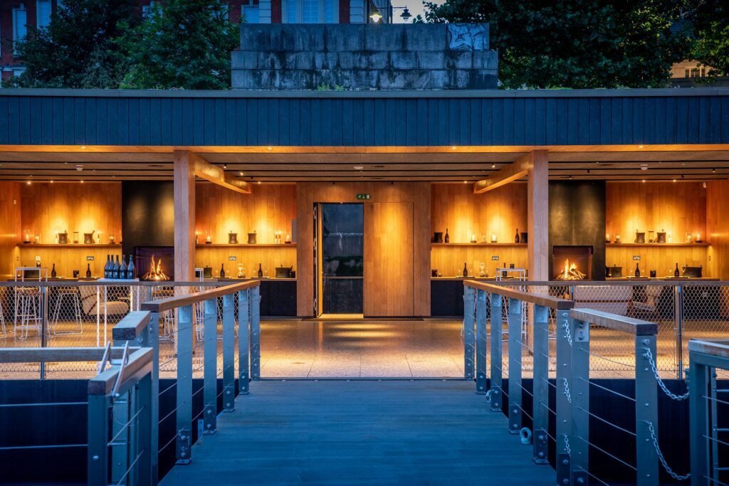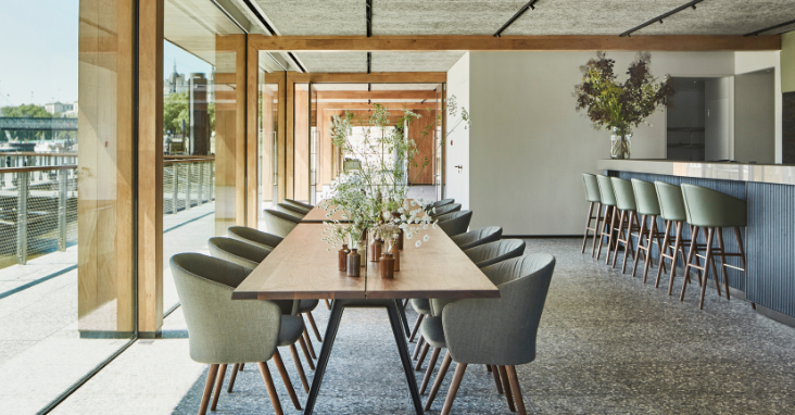 The Woods Quay Chef's Counter dining experience is something truly special, a chance to dine directly on the River Thames, with rare access to one of London's most storied waterways. Nestled between Waterloo Bridge and Westminster, Woods Quay is a beautiful contemporary pavilion that gently rises and falls with the tide, offering ever-changing views of London's most beloved riverscape. Built on the site of a historic Victorian pier and celebrated for its architectural vision, it reimagines the river as both a passage through the city and a destination in its own right.